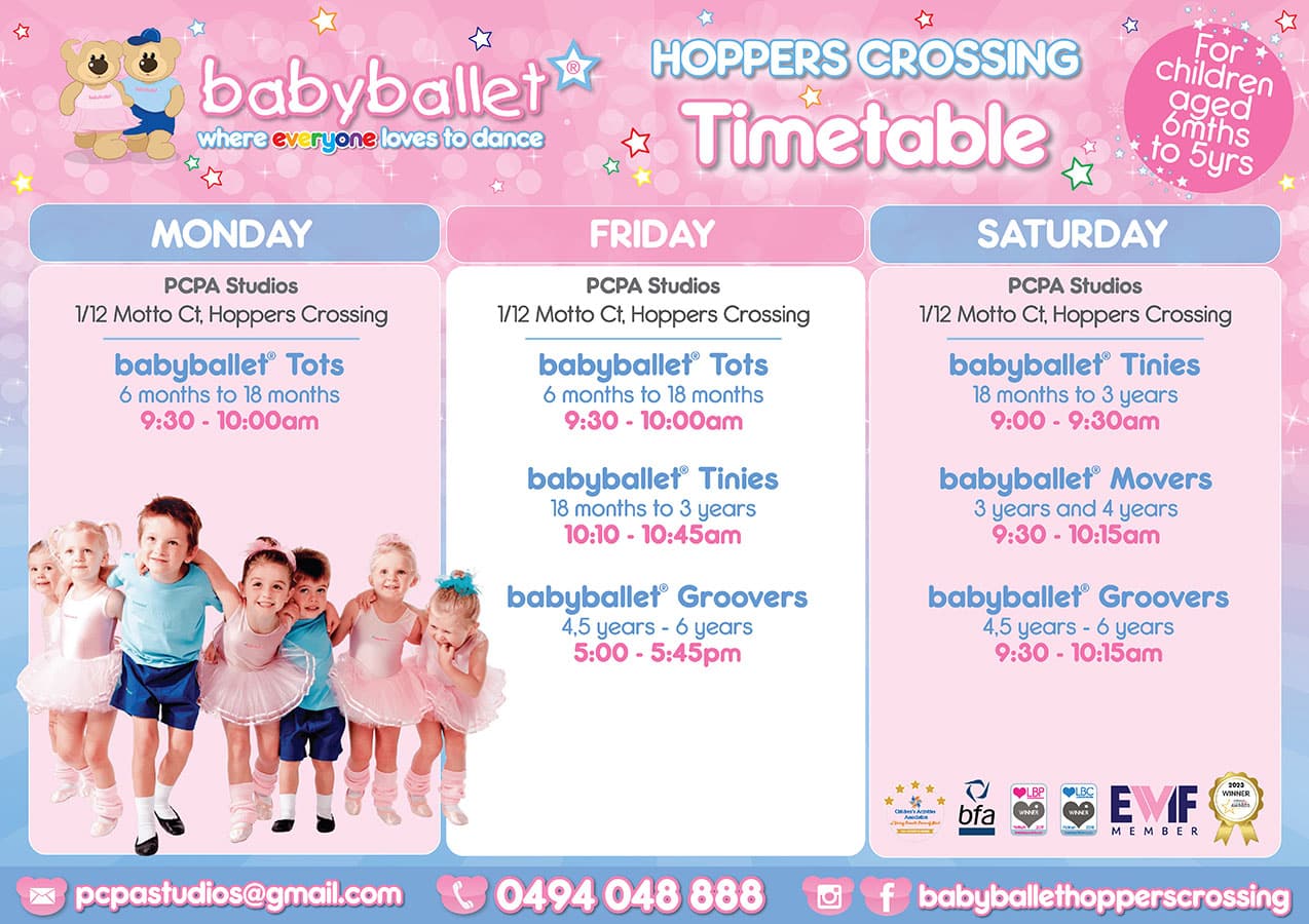 On behalf of everyone at babyballet® Hoppers Crossing, we look forward to welcoming you and your little ones to the magical world of babyballet® very soon!